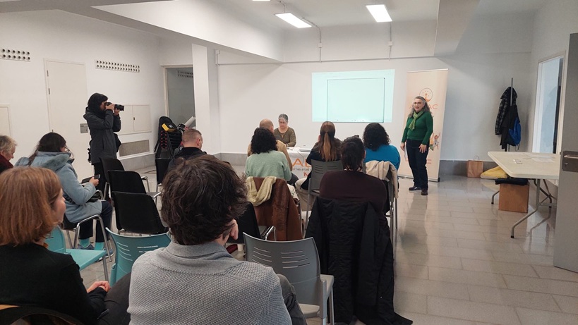 - La inquera Margarita Jaume Fe celebra su 100 cumpleaños. Durante el encuentro le han entregado un ramo de flores y un obsequio realizado de forma artesanal por Punts amb Vida