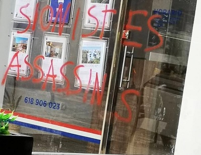 Judeofobia en Manacor: La Policía Nacional investiga diferentes pintadas en comercios de la capital del Llevant, en un escaparate puede leerse “Sionistes Assassins”, piden amparo al juzgado, fiscalía